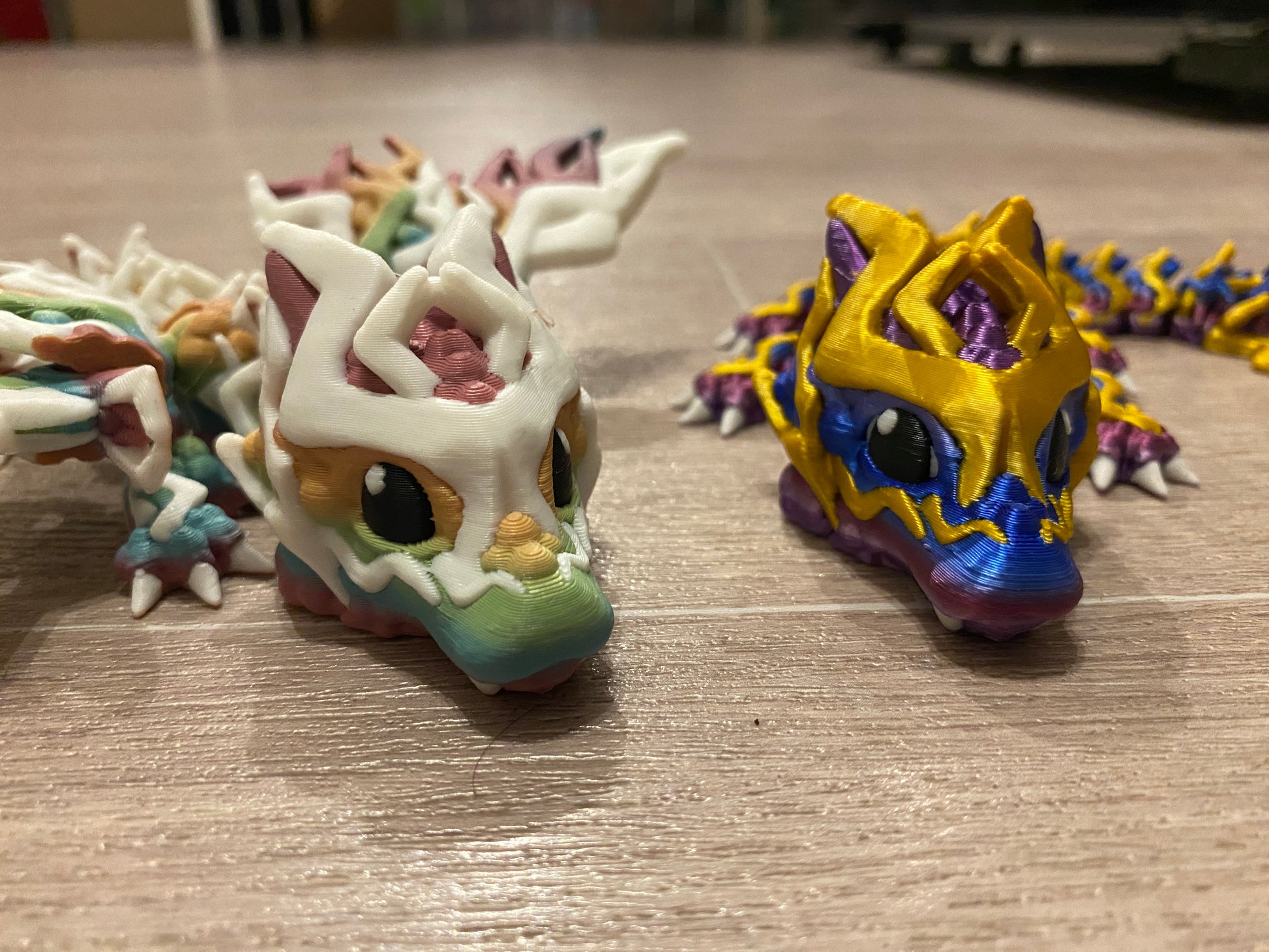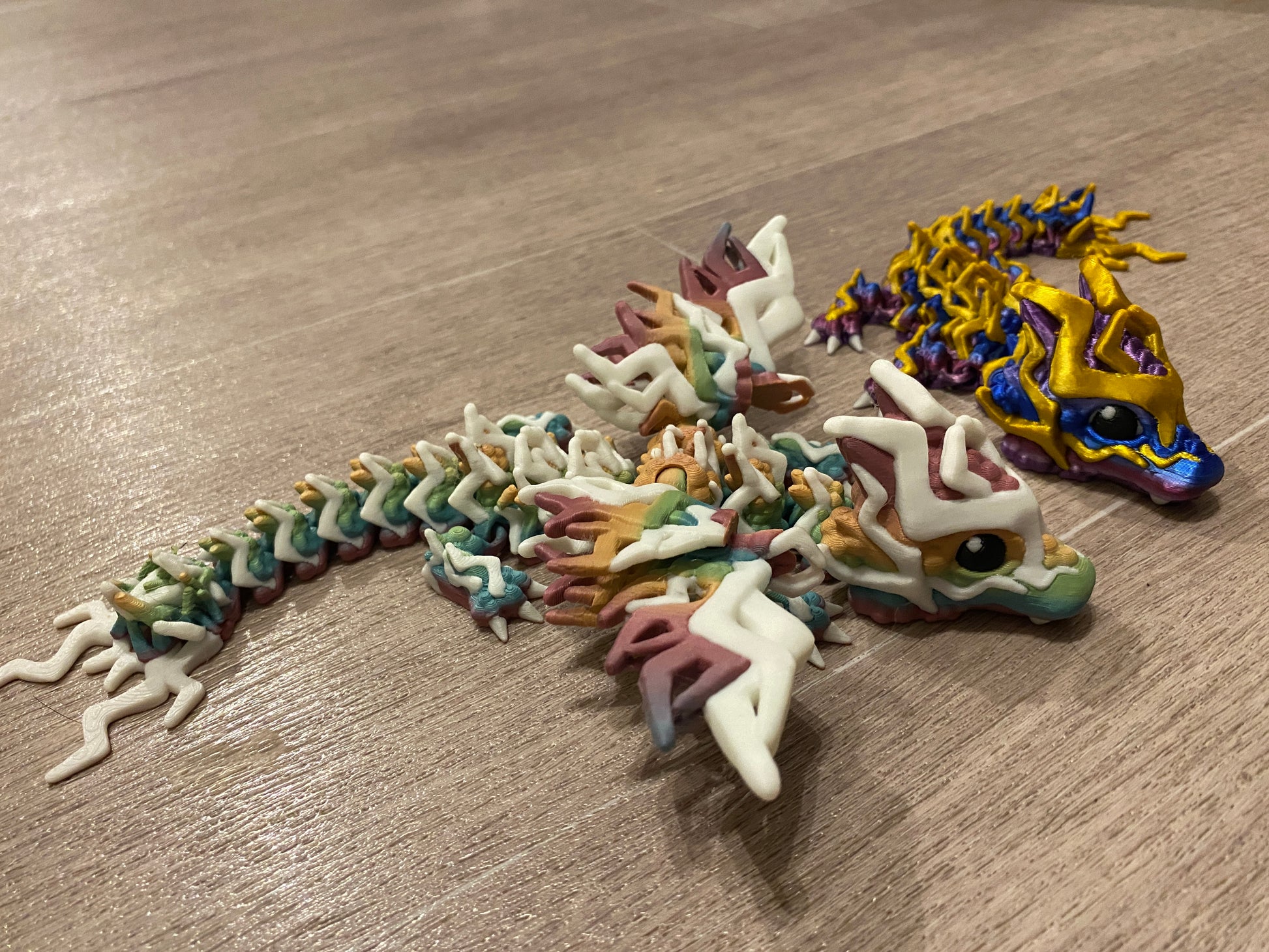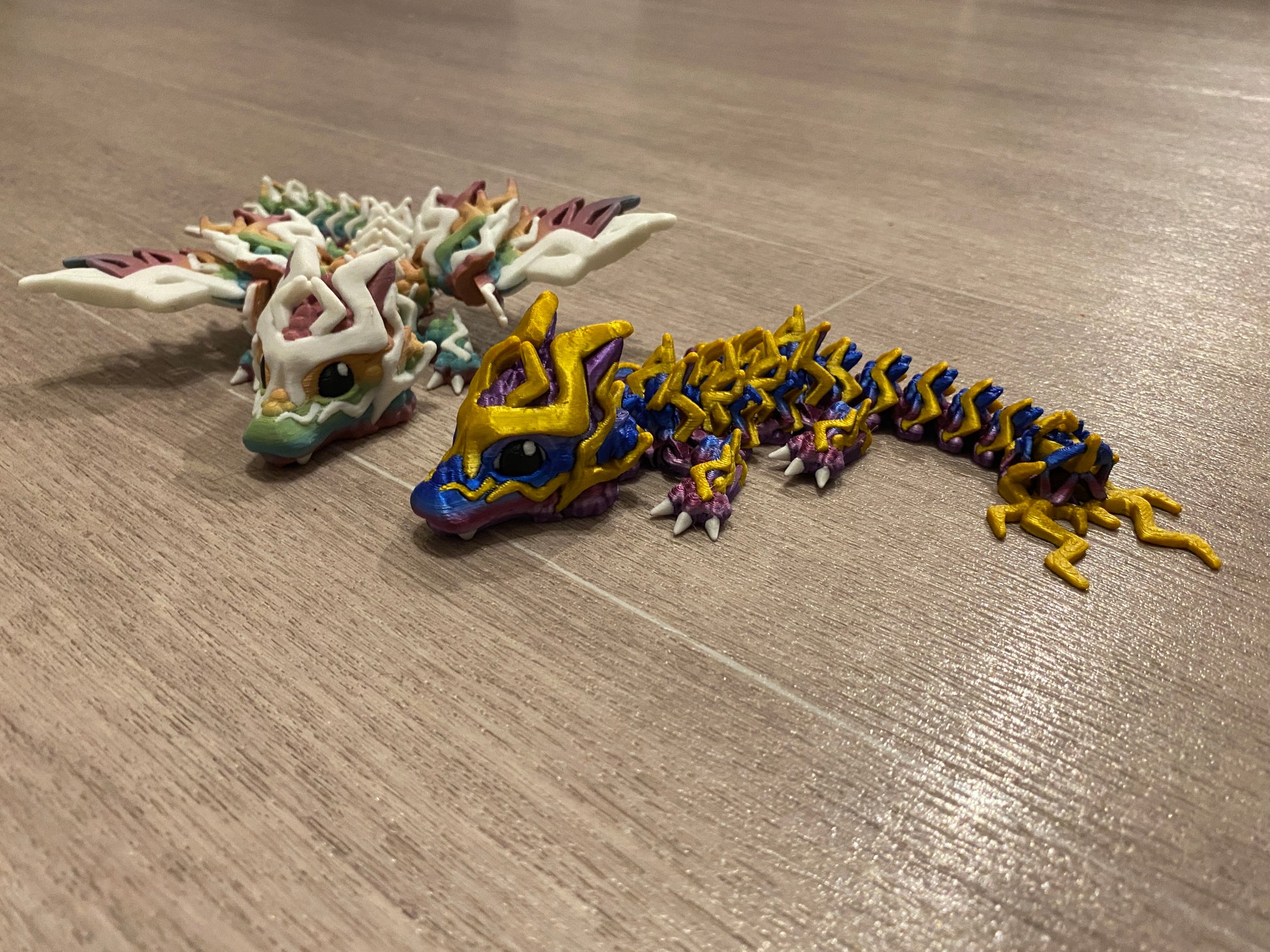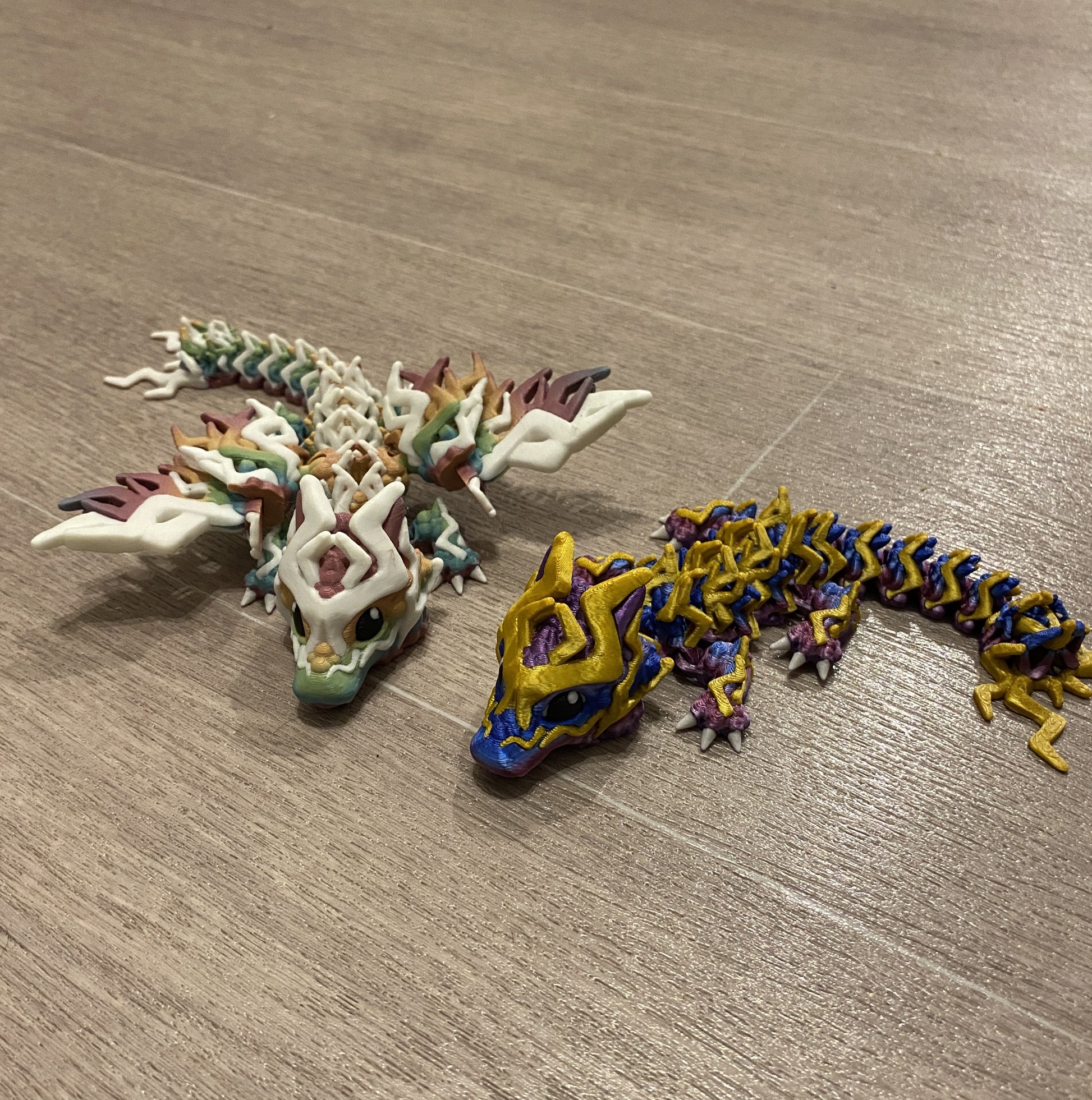 Without wings in a silky gradient and silky Gold (dubbed the Thanos dragon by all the kids who see him)